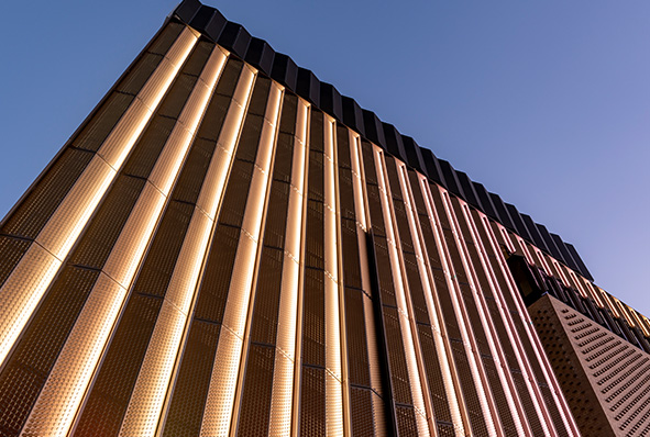 A common challenge on carparks and buildings facades is managing light-spill and creating visual screening from the exterior. Often there is a requirement to achieve Ventilation at the same time. Arcadia Muse 3D Perforated Facades are a unique solution to this challenge. The Muse 3D range has a diverse array of patterns to choose from and a diverse range of perforated angles to meet building façade design challenges.