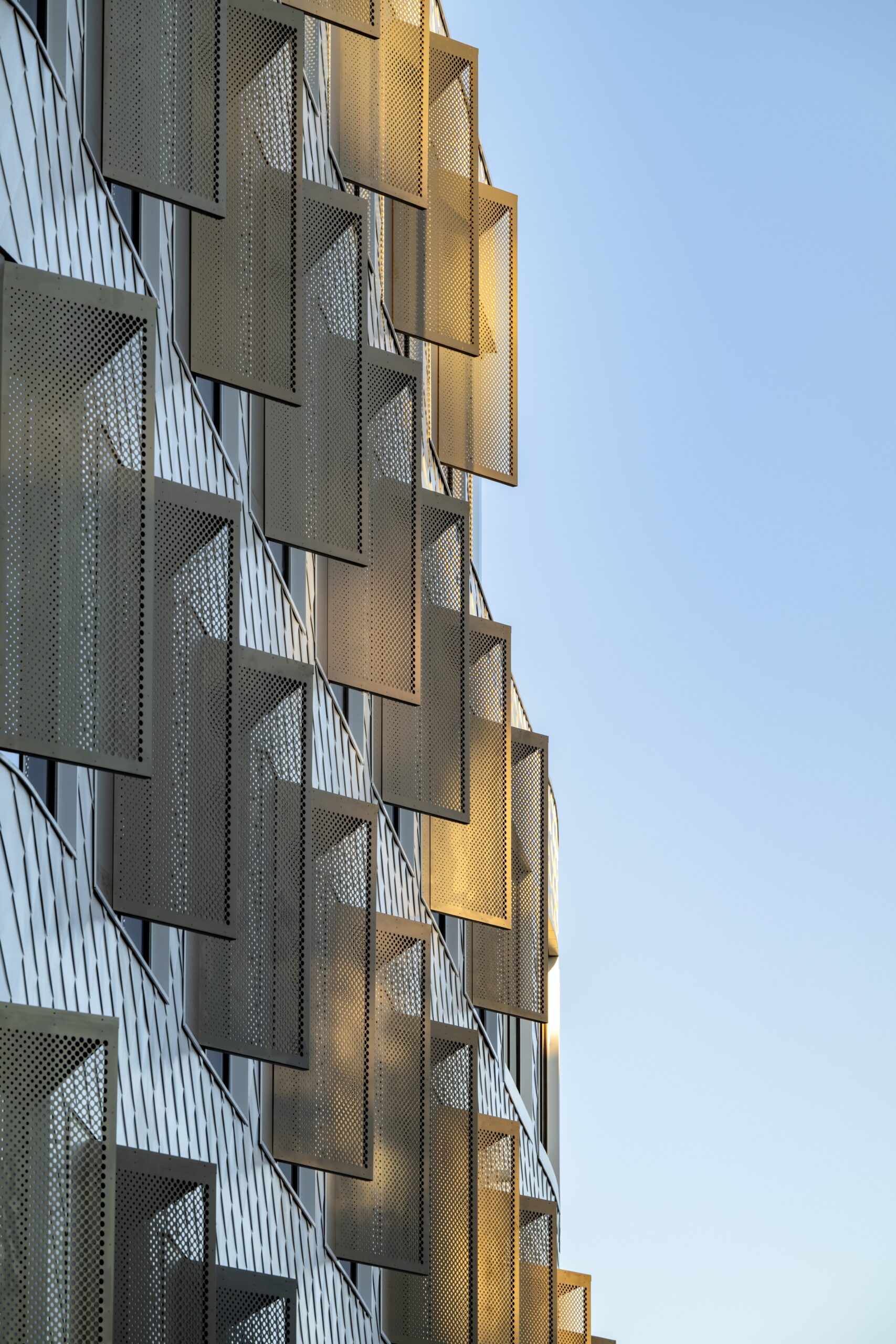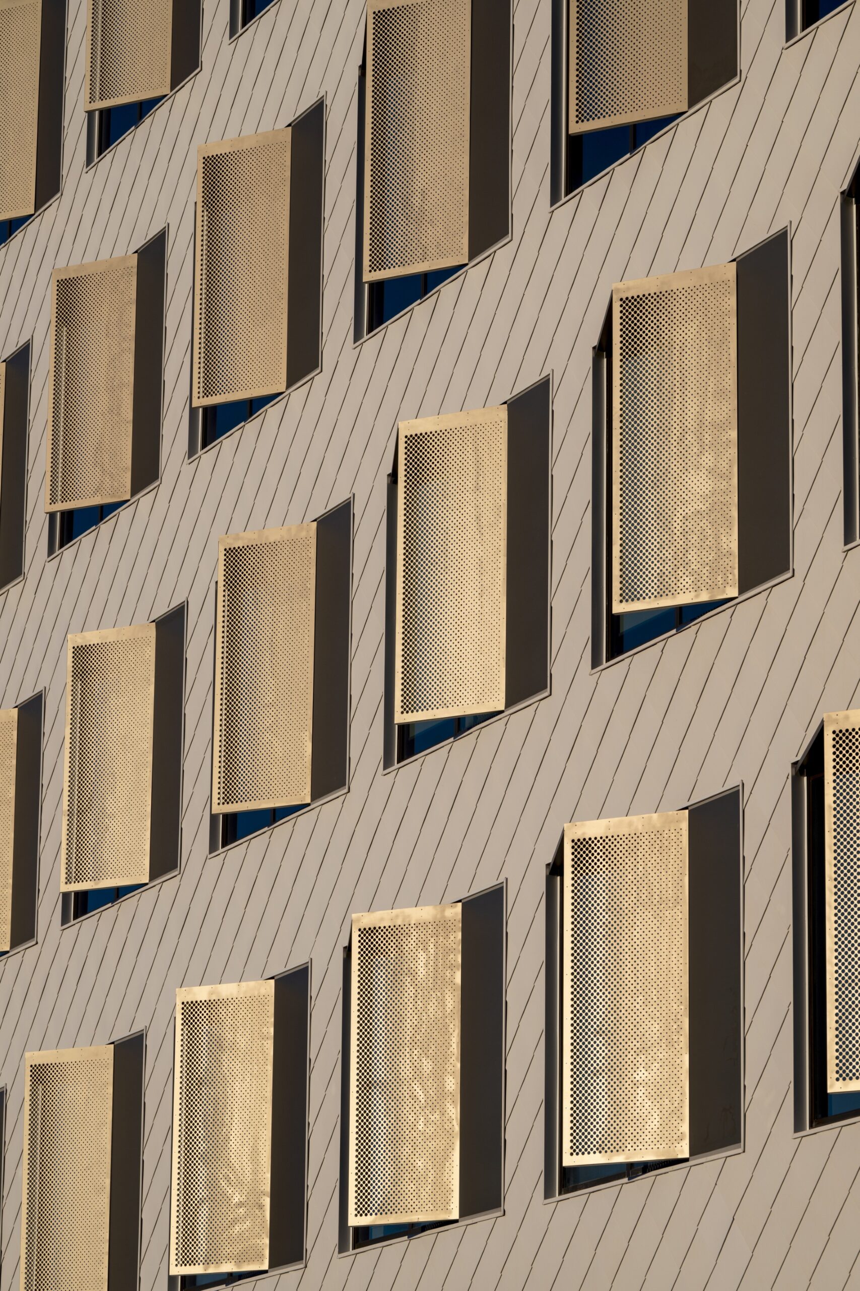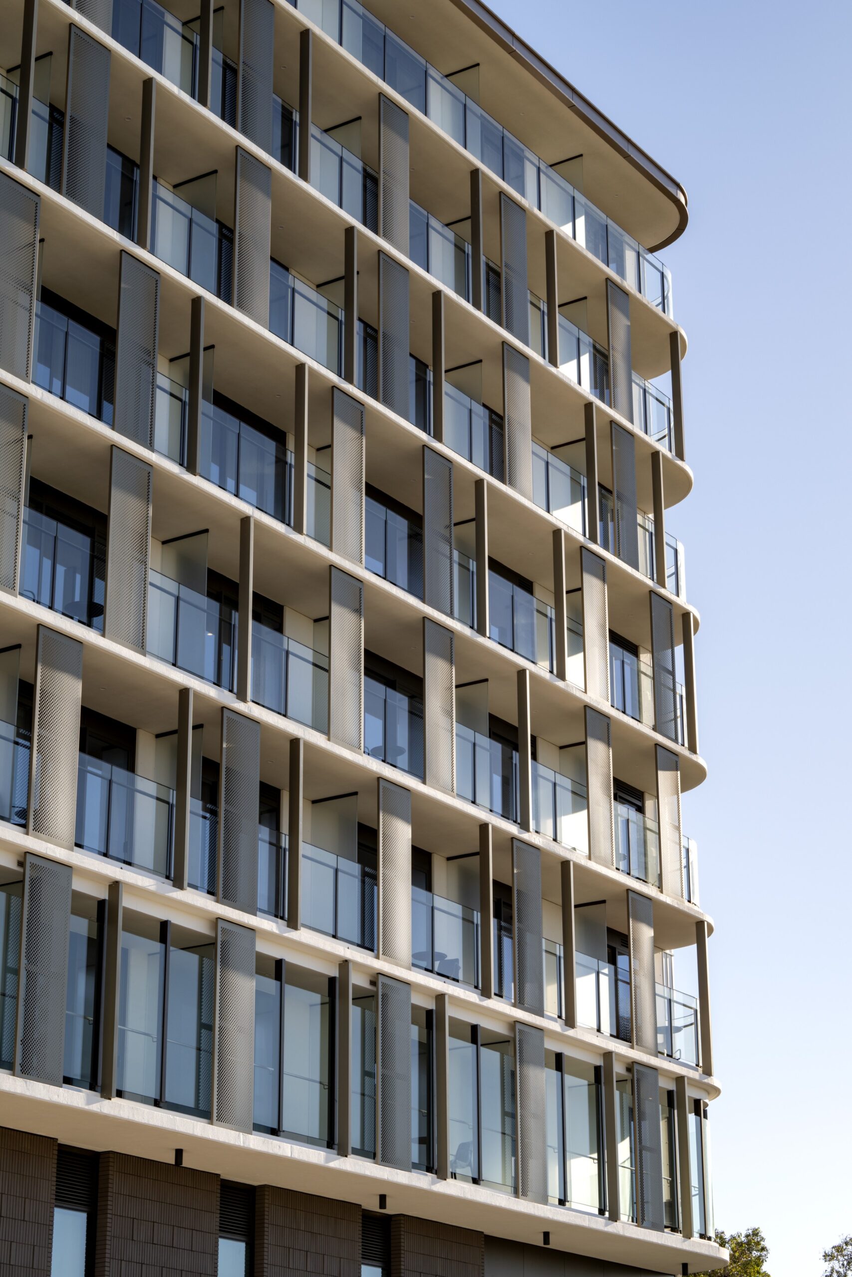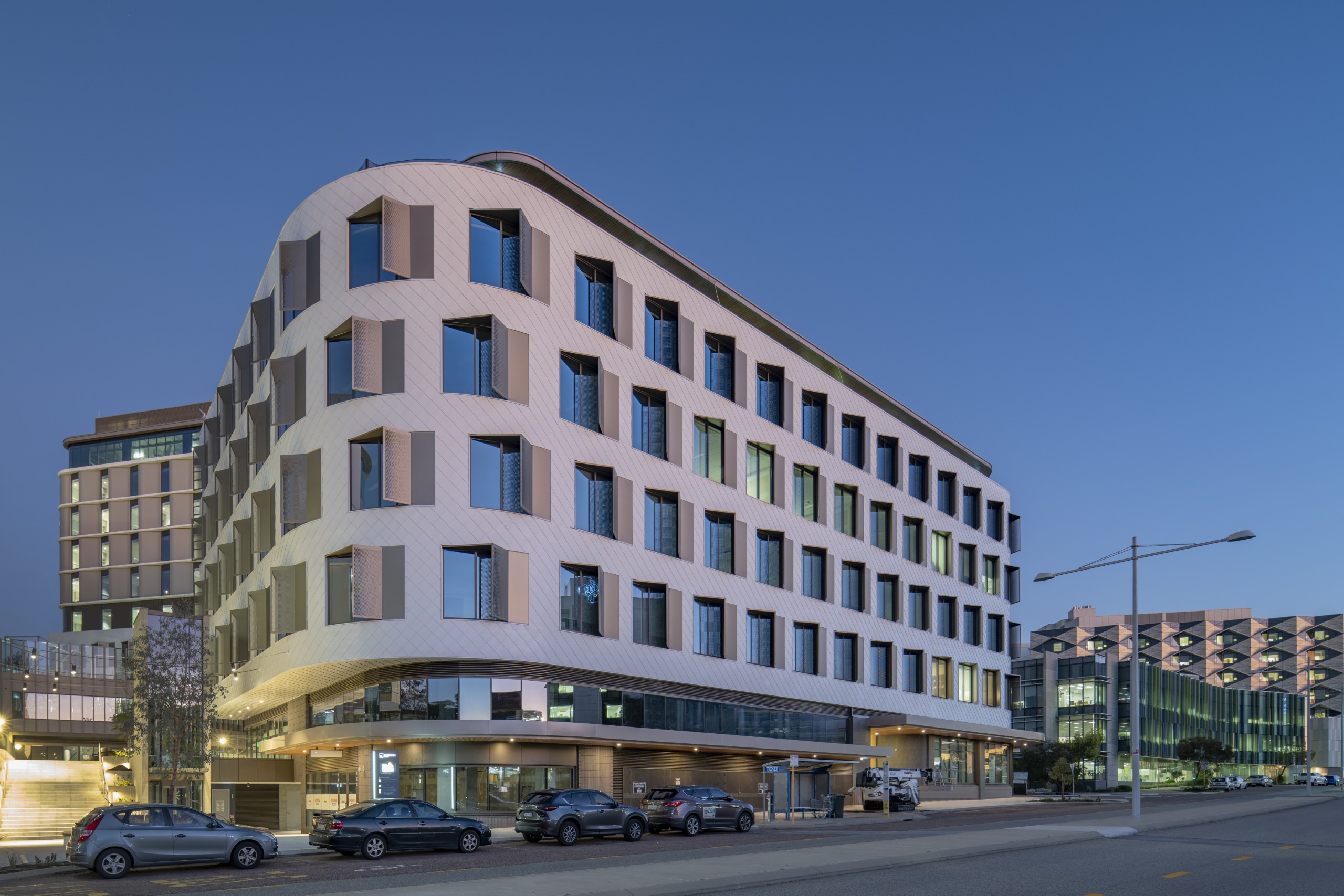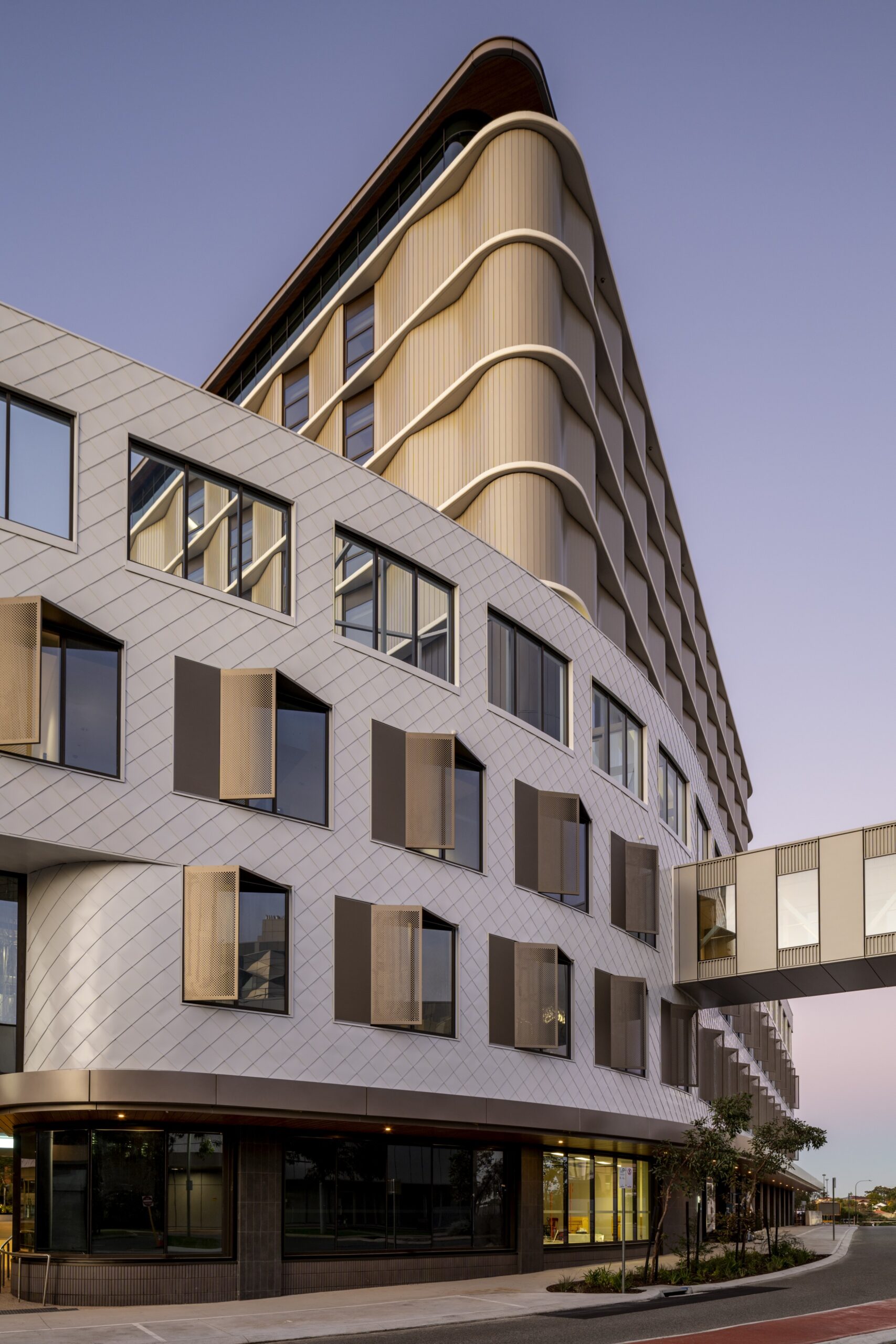 Arcadia worked in close collaboration with renowned architects Hassell and Multiplex on the Murdoch Health and Knowledge Precinct. During the design stages, we worked closely with the team to deliver innovative solutions for building shading, airflow, privacy, and screening. Our team addressed complex facade interface details to ensure functionality and aesthetics were seamlessly integrated. The project features over 5,000 m² of Arcadia’s diverse product range, including our Spur Louvres, Zest Sunshading, and Muse® perforated solutions.