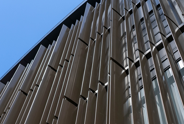 Enhance a building's visual impact with Arcadia's architectural façade system. Our Zest® Bullet sunblades not only enhance a building's appearance but also enhance its performance with solar shading functionality and improves energy efficiency. This system is designed to provide optimal reduction of solar heat gain without compromising ambient light levels in the building.