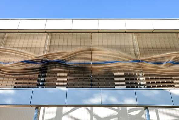 Match® grating systems are commonly used as awnings or shading devices, however with Arcadia’s ability to customise, designers and architects can incorporate features through customised blade profiles being incorporated. This can be incorporated as artwork or imagery to enhance public appeal for your project and façade, and added feature can be achieved through using customised blade colours. Based on the orientation of the system it is able to vary and change the amount of natural lighting inlet and privacy and screening